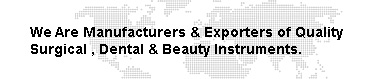WELCOM TO OUR SITE WE ARE MANUFACTURERS AND EXPORTERS OF SURGICAL DENTAL AND BEAUTY RANGE OF INSTRUMENTS. WE PROVIDE IN TIME DELIVERIES.